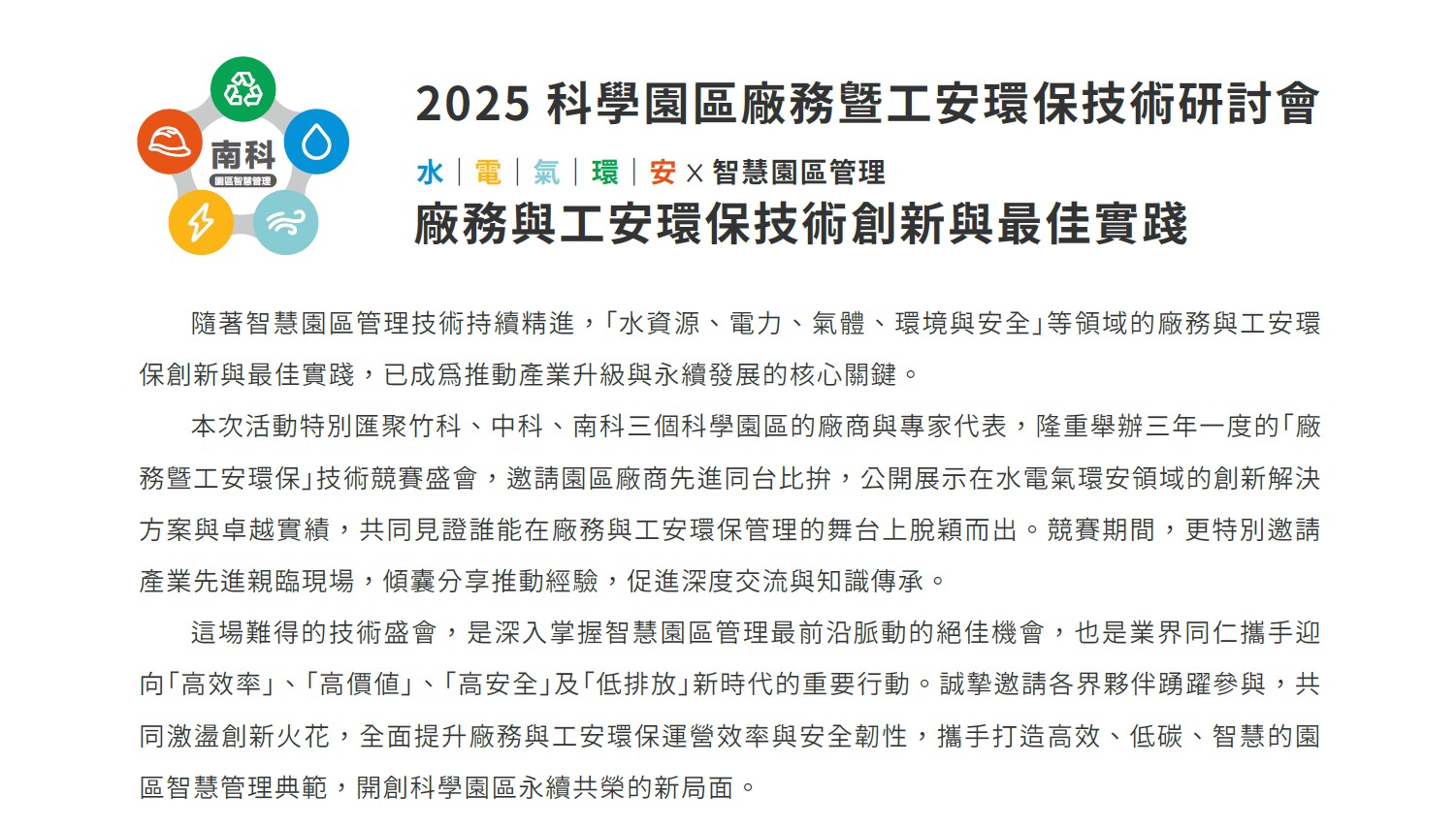 2025 科學園區廠務暨工安環保技術研討會